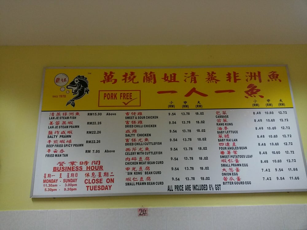 Restoran Lan Je Menu